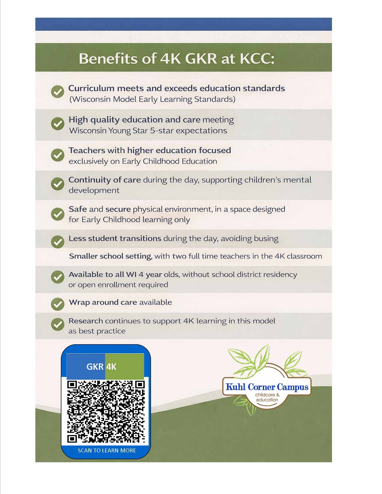 classroom. Kuhl Corner Campus follows the State of Wisconsin Children and Family regulations AND meets